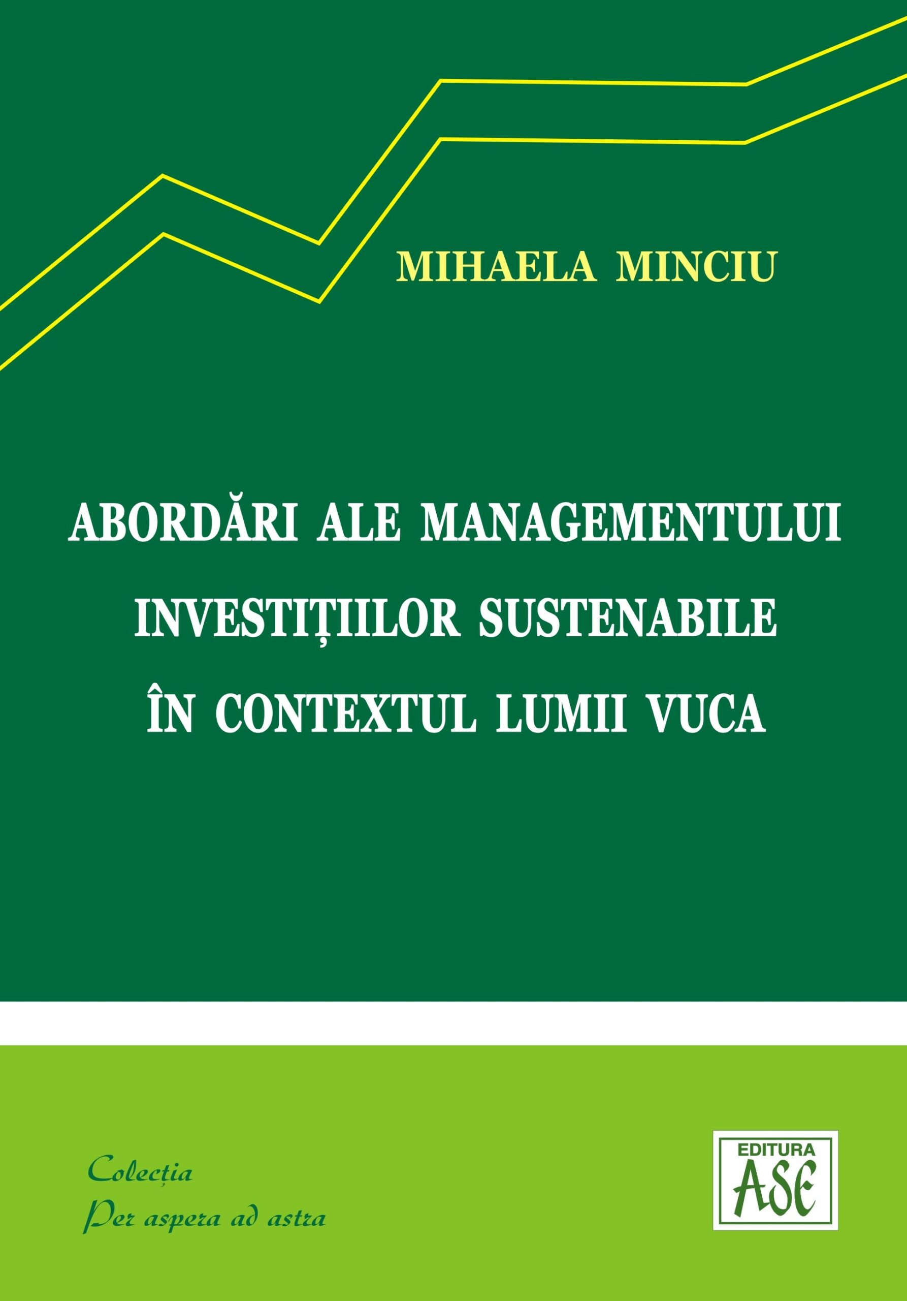 Cartea „Abordări ale managementului investițiilor sustenabile în contextul lumii VUCA” are drept obiectiv principal realizarea unui model de acțiune, în vederea sprijinirii organizațiilor în desfășurarea și coordonarea activității investiționale, într-un mediu de afaceri din ce în ce mai volatil, nesigur, complex și ambiguu (VUCA).